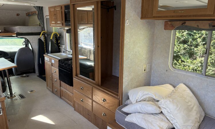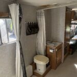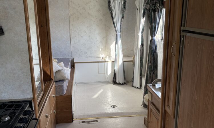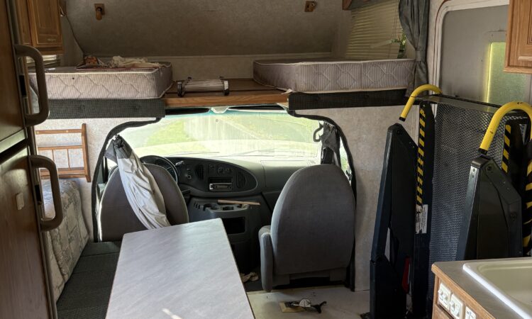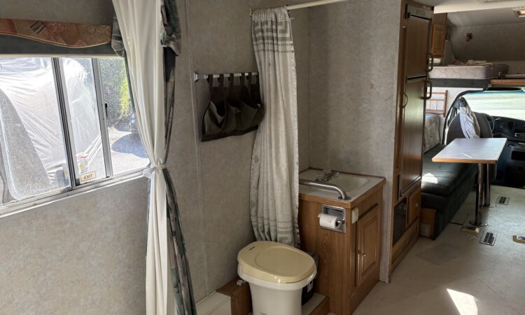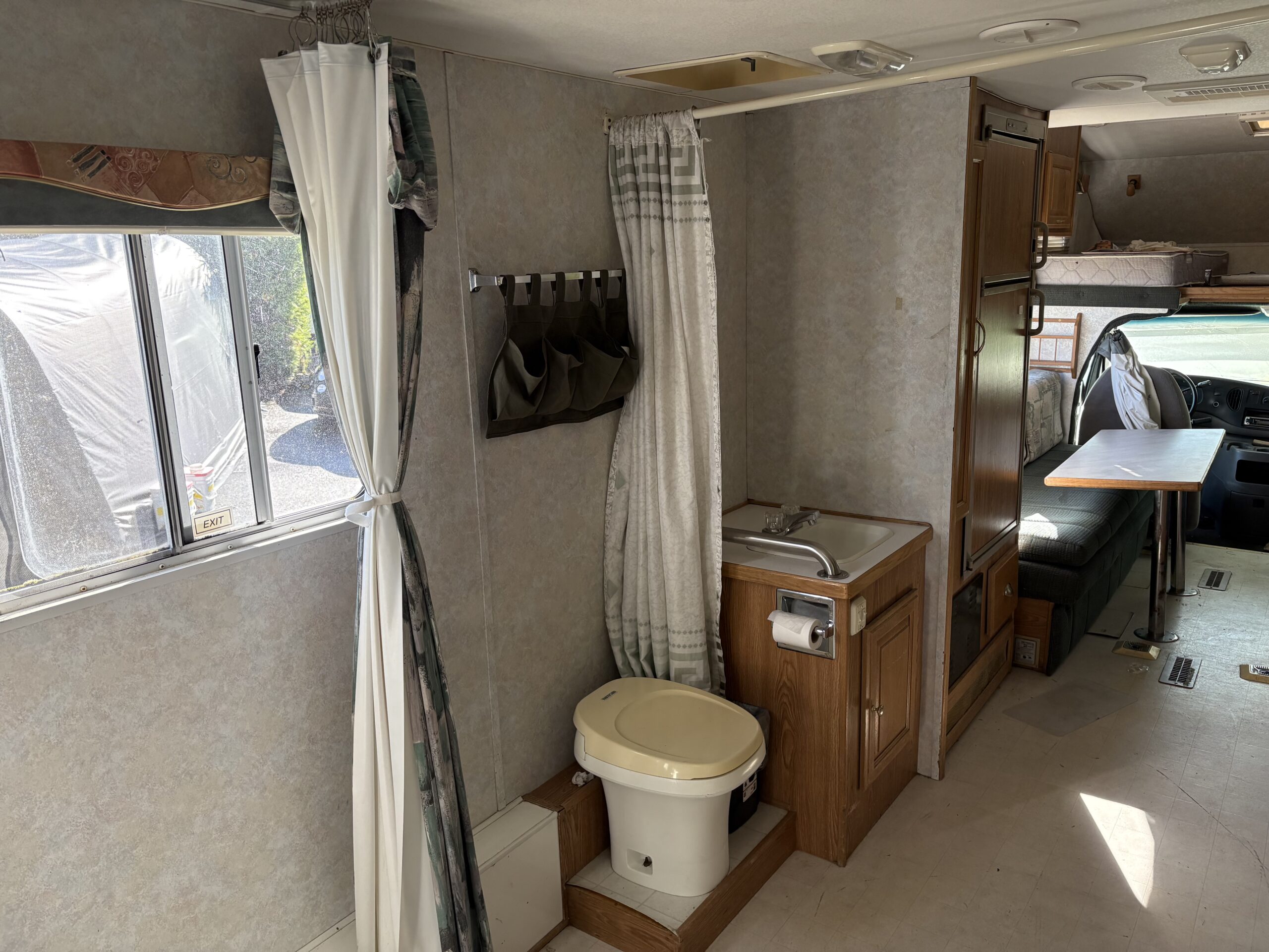 Rolling Hoyer lift works well throughout the interior as well as toilet