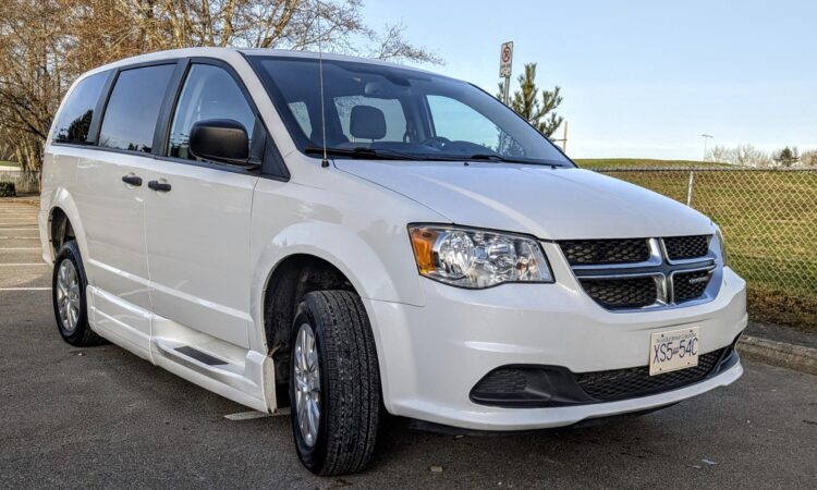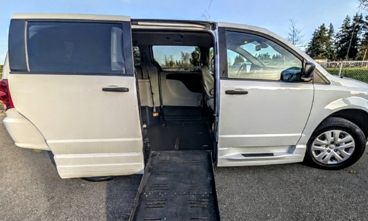 2019 Dodge Grand Caravan, modified with a side-entry manual ramp by Braun Ability. Good condition, with brand new front and rear brakes and all-season tires. Comes with four Q’Straint tie-downs to secure the wheelchair passenger.