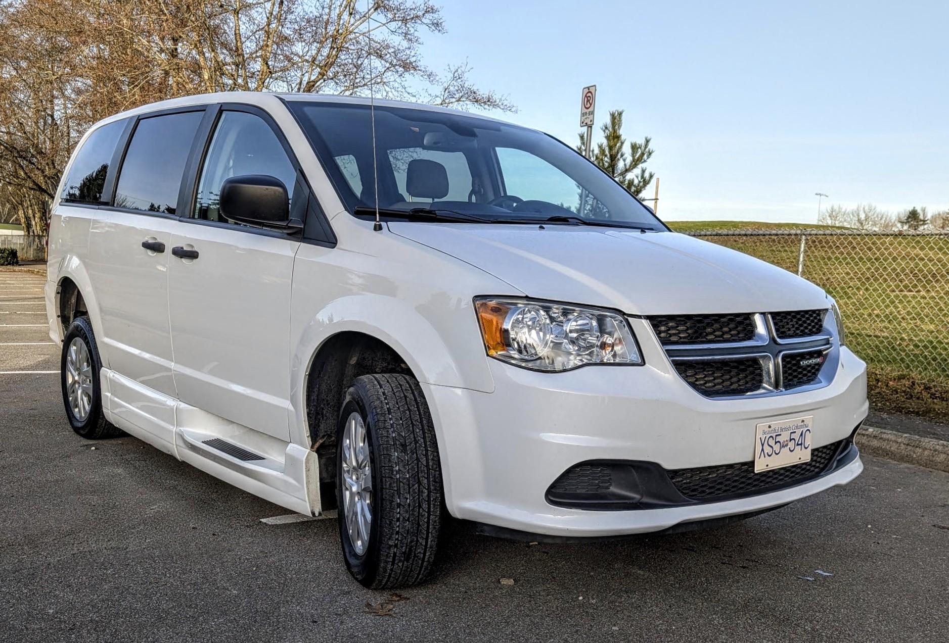 2019 Dodge Grand Caravan, modified with a side-entry manual ramp by Braun Ability. Good condition, with brand new front and rear brakes and all-season tires. Comes with four Q’Straint tie-downs to secure the wheelchair passenger.