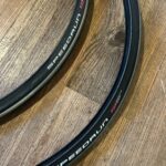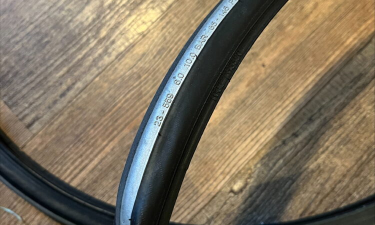 Used condition high pressure court tires size 23-559 (25”). Not sure how much life they have left in them, they are older and the rubber feels a bit dry. One dented area (pictured) should be fine with a tube in it as it doesn’t seem to be affecting the bead. Happy to pass them along for free if you want to give them a try.