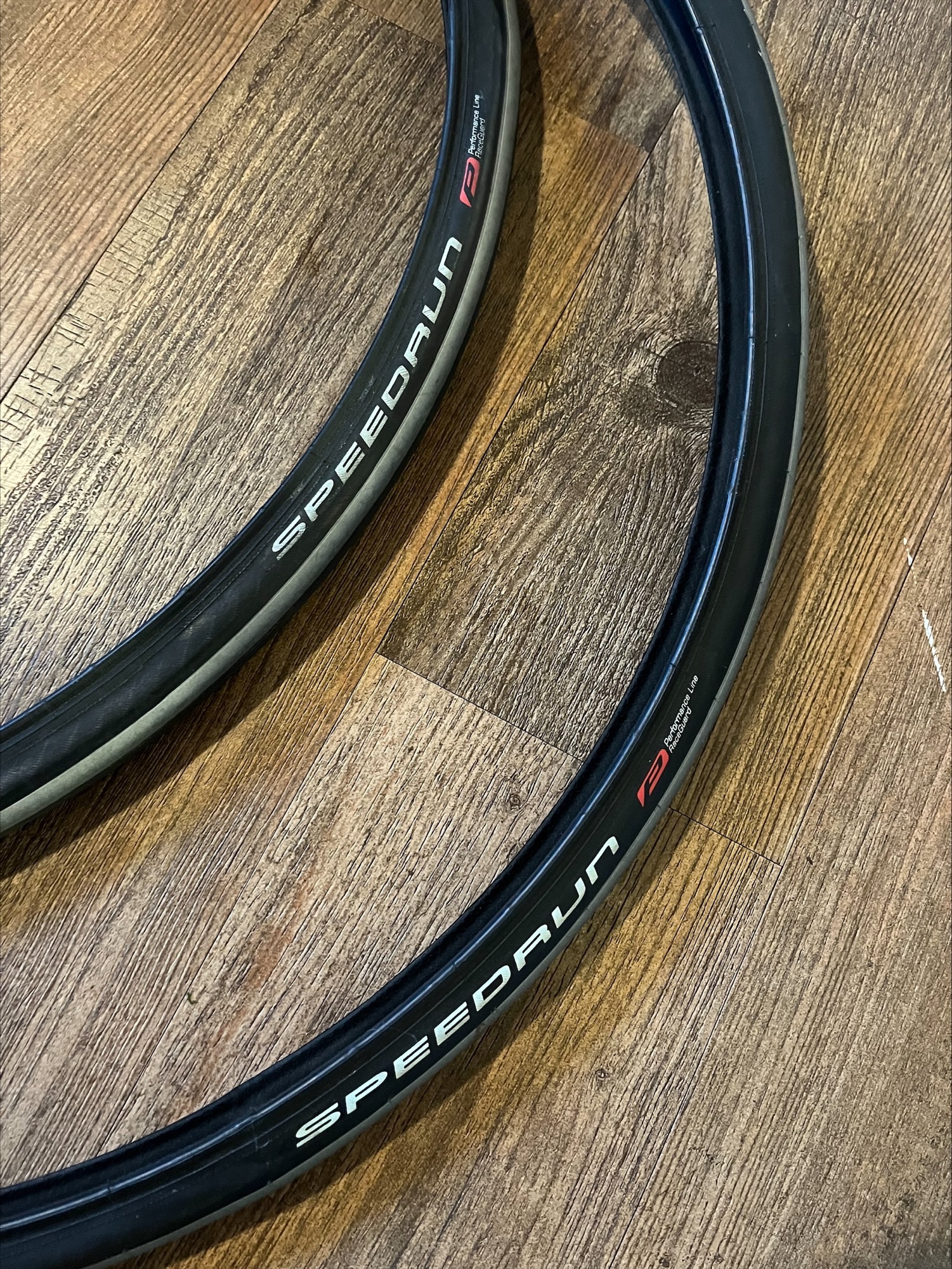 Used condition high pressure court tires size 23-559 (25”). Not sure how much life they have left in them, they are older and the rubber feels a bit dry. One dented area (pictured) should be fine with a tube in it as it doesn’t seem to be affecting the bead. Happy to pass them along for free if you want to give them a try.