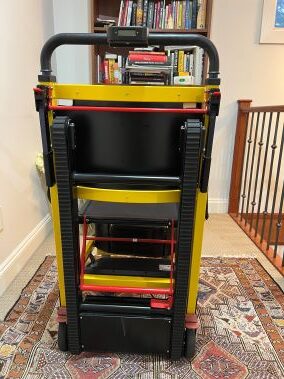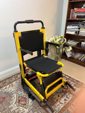 The Stairlift Wheelchair makes it easy to transport individuals up to 120 flights of stairs on a single charge, handling up to 400 pounds while weighting 62 pounds. It is dependable and easy to use.