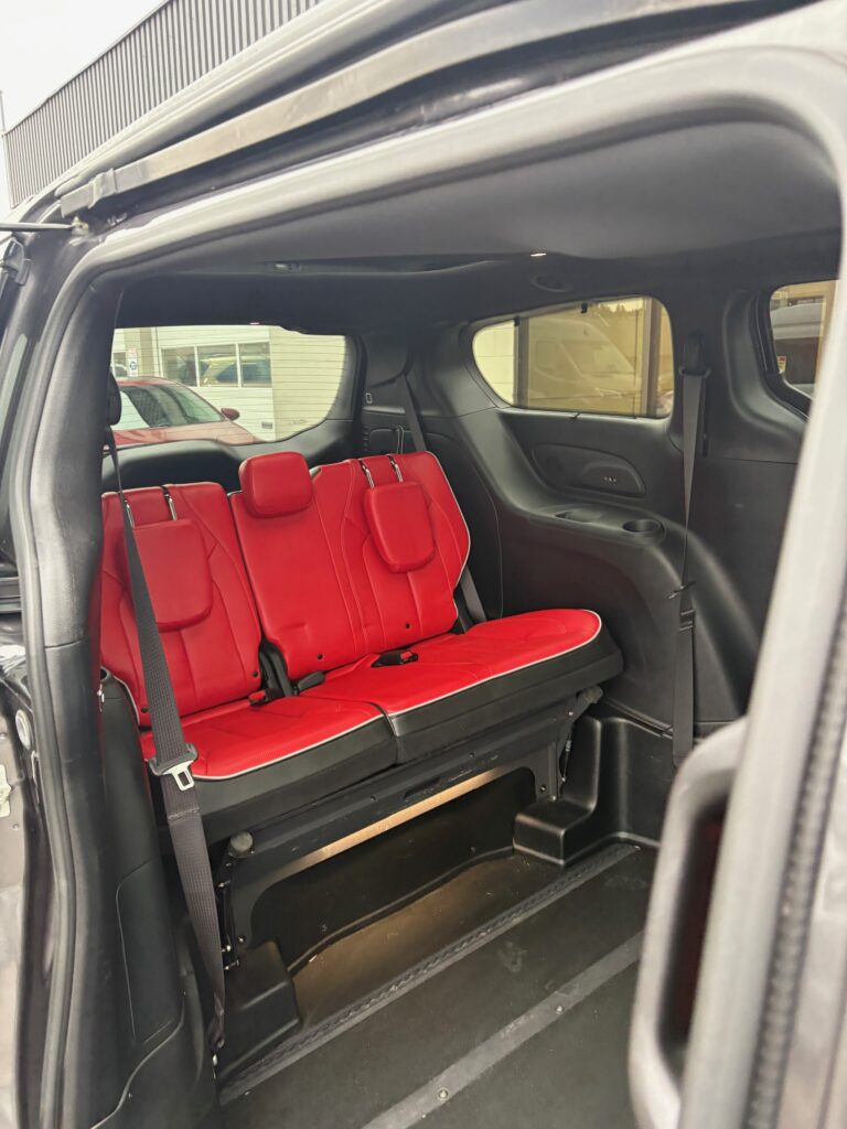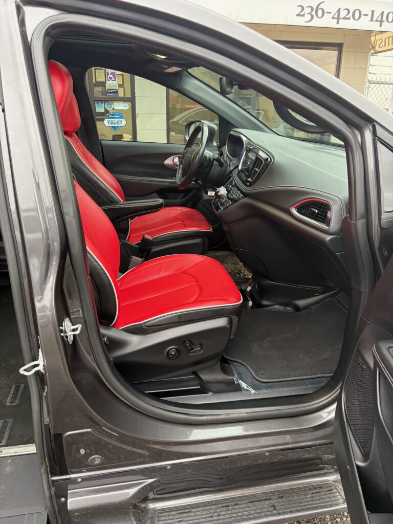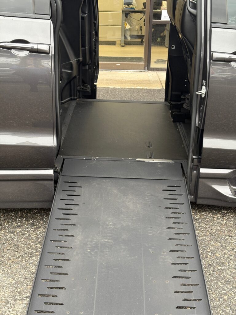 The in-floor ramp system folds neatly underneath the vehicle, keeping the doorway clear for ambulatory passengers while providing smooth and reliable wheelchair access when needed. Ideal for both personal and commercial use.