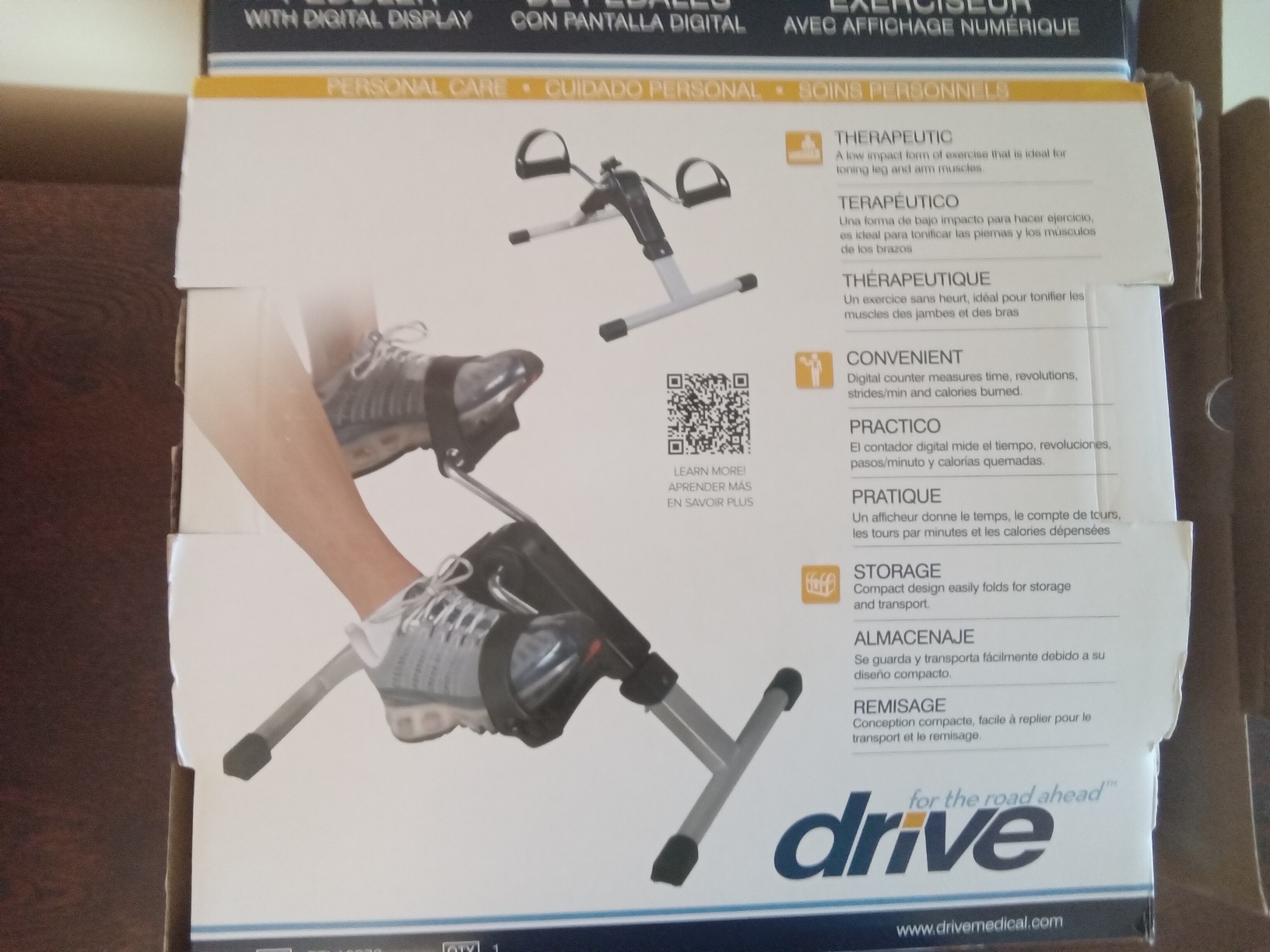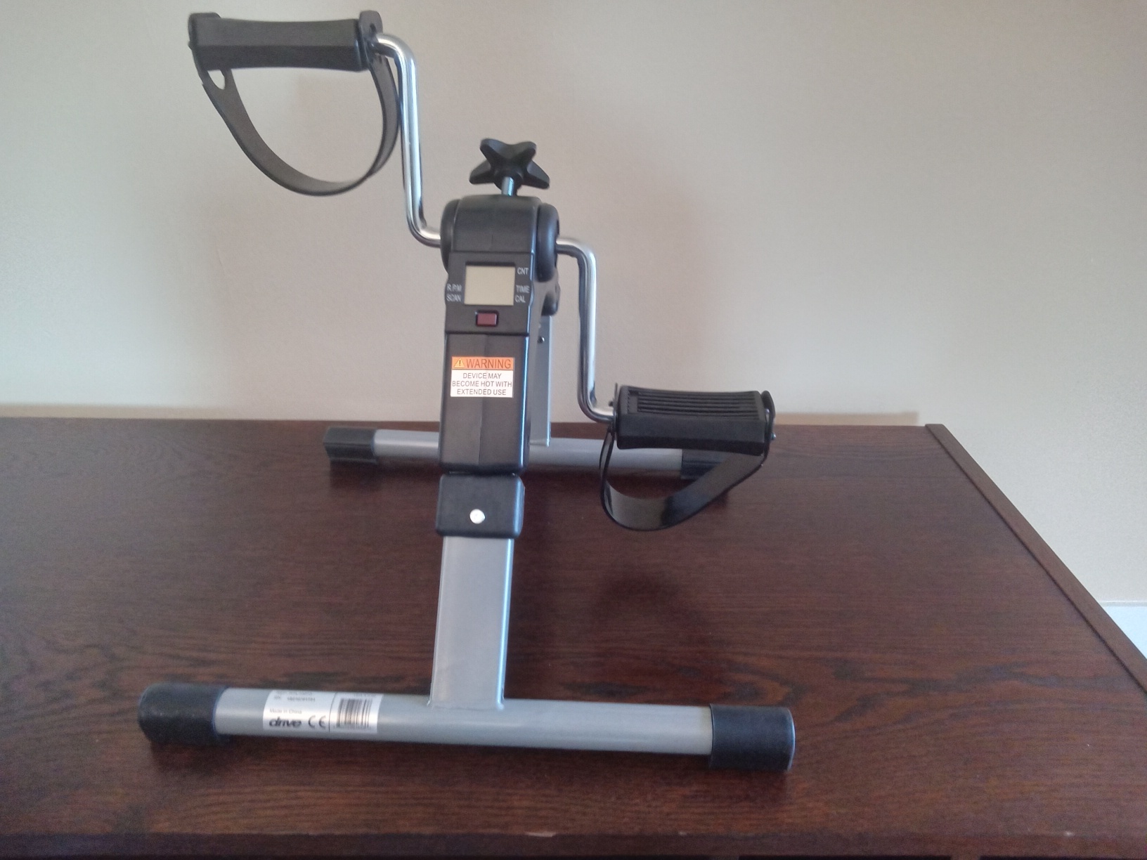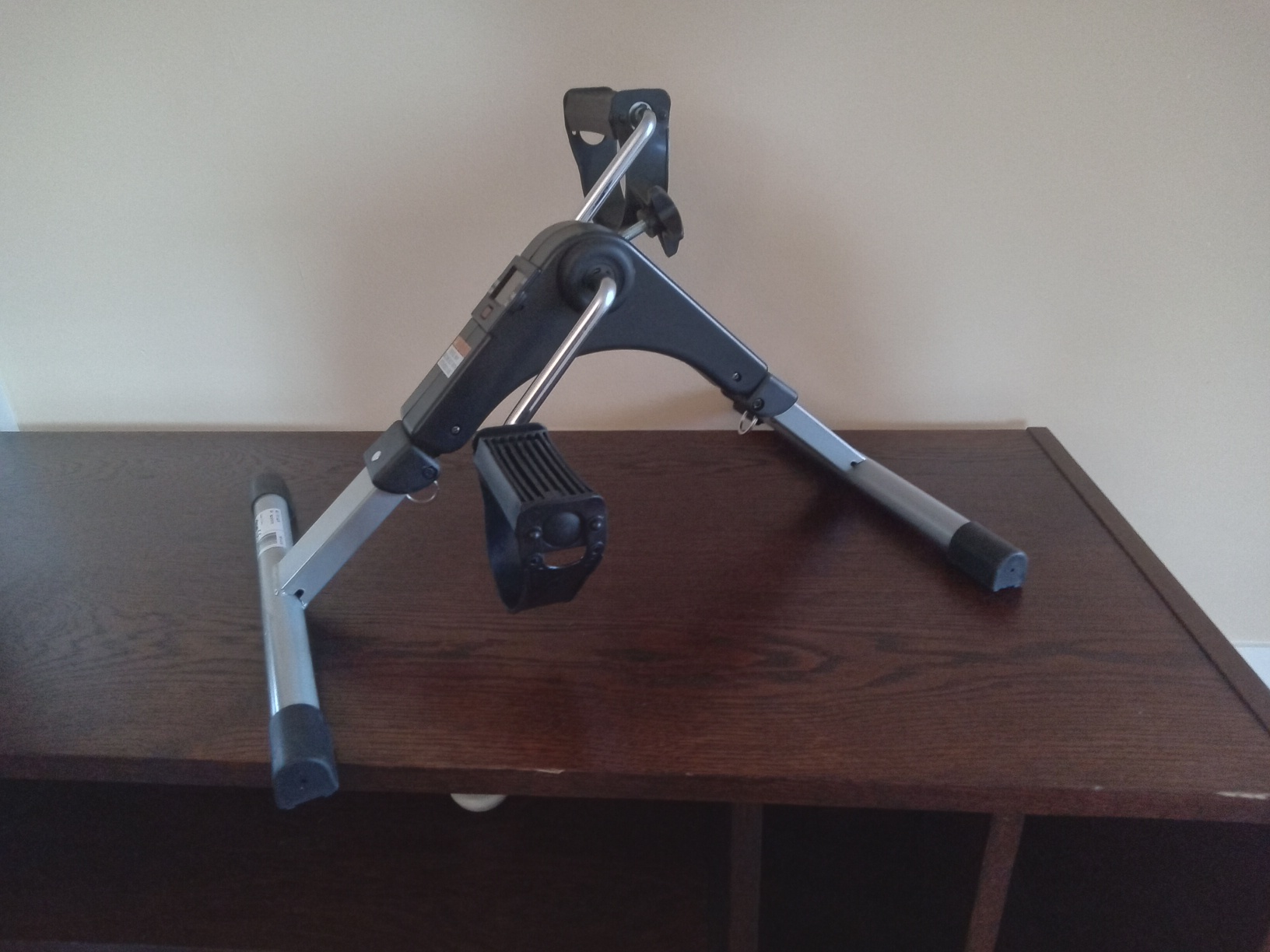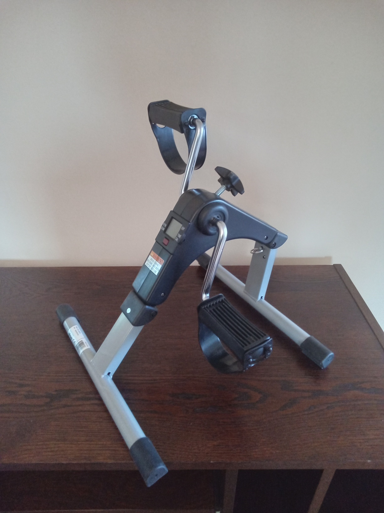 Exercise your legs and glutes while you sit in a chair. Digital counter measures time, revolutions, strides per minute, and calories burned. Adjustable tension. Folds up for easy storage. Instructions included. Barely used.