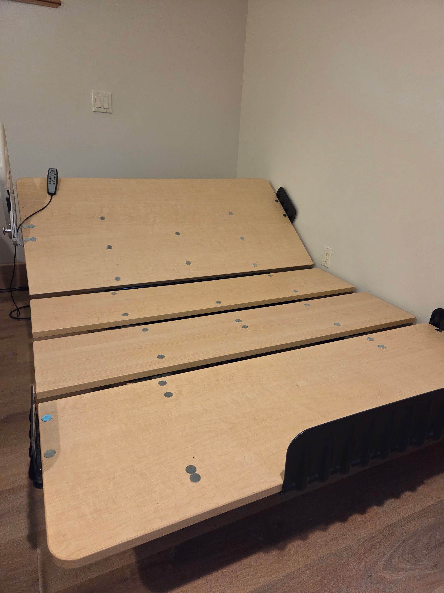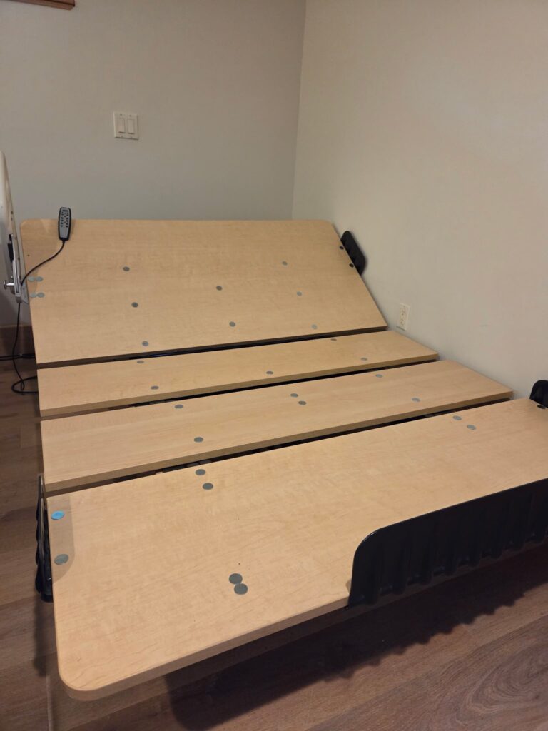 Looks like a regular piece of furniture, not a hospital bed, even though it has the same functions and can fit therapeutic mattresses like Roho or Gel.