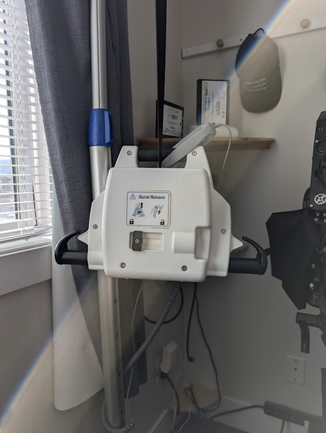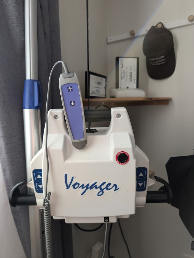 Voyager portable ceiling lift 2 years old. 2 new batteries Purchased Nov 6/24- Dec 27/24 $625 new base charger Dec 22/ 24 $350 charging base-charging cord.Works awesome very reliable.